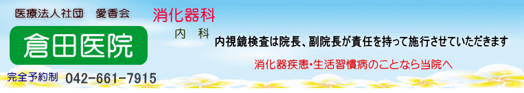 | 八王子市の倉田医院 ■消化器科 ■内視鏡(胃・大腸) ■内科 ■完全予約制 ■西八王子駅徒歩5分 ■往診・在宅医療 |