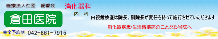 | 八王子市の倉田医院 ■消化器科 ■内視鏡(胃・大腸) ■内科 ■完全予約制 ■西八王子駅徒歩5分 ■往診・在宅医療 |